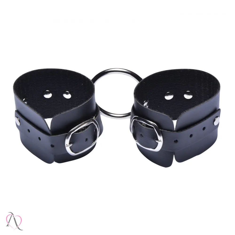 Modo de uso: Ajuste as algemas nos pulsos e utilize a fivela regulável para um encaixe confortável e seguro. A argola de metal permite a fixação em outros acessórios ou móveis, ampliando as possibilidades para diversas práticas sensuais.