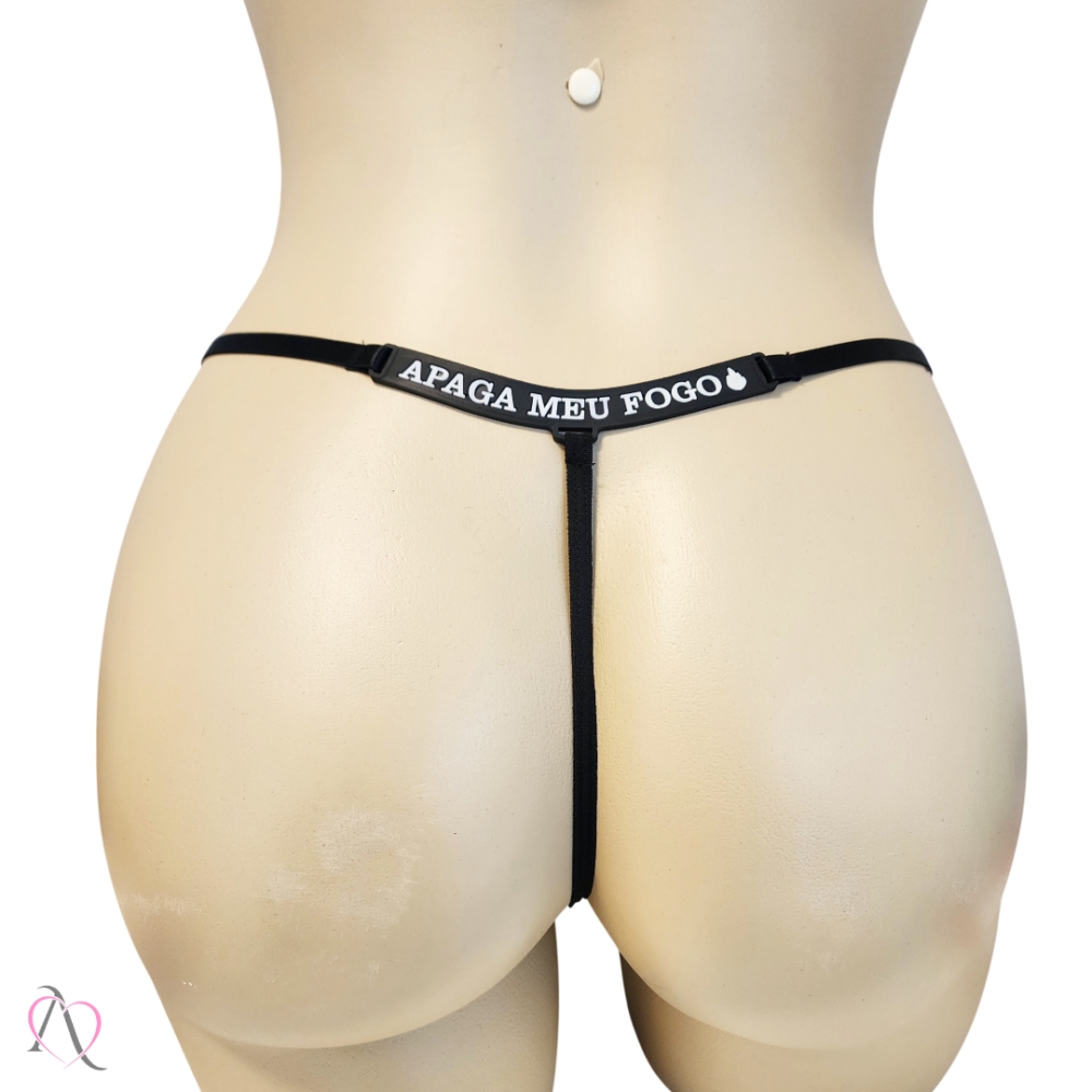 Contém: 01 Calcinha Fio Dental preto com a frase APAGA MEU FOGO.
