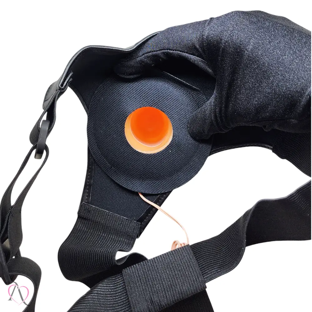 Contém 1 capa peniana com vibrador e 1 cinto de couro embutido.