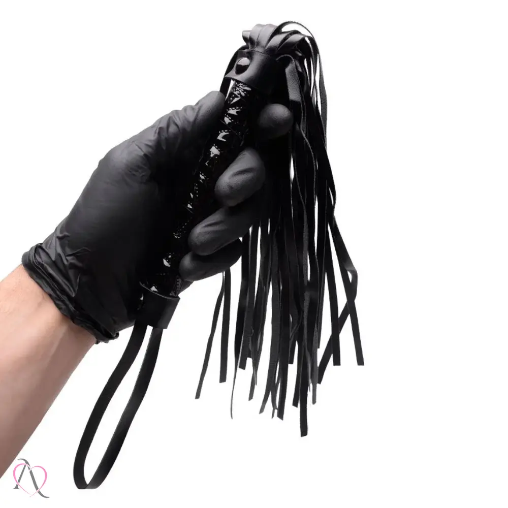 Seu cabo firme em vinil texturizado com acabamento brilhante traz um ar de luxo à prática do BDSM, enquanto as franjas de camurça macia permitem desde carícias provocantes até palmadas mais intensas.