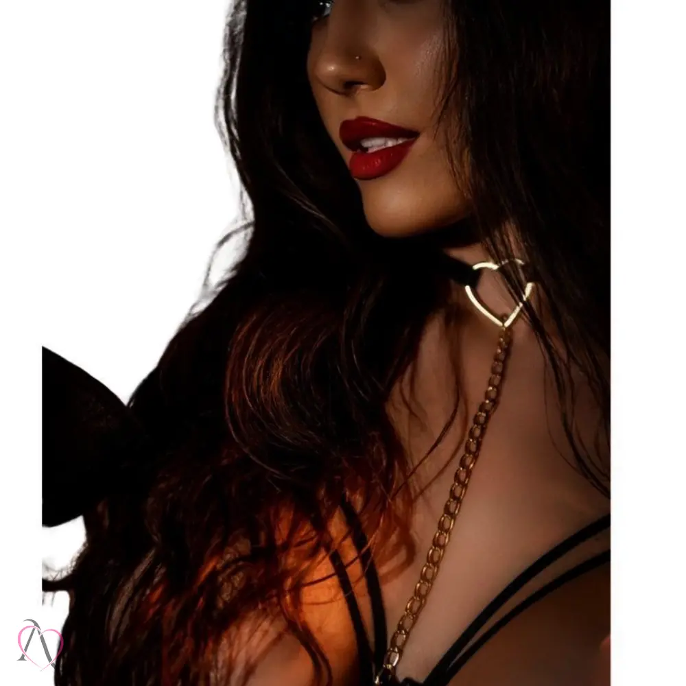 Mais do que um acessório, a Coleira do Amor é uma declaração de intenções. Feita para mulheres que desejam explorar sua sensualidade com elegância, ela combina alças delicadas, correntes leves e um pingente de coração que captura olhares e desejos.