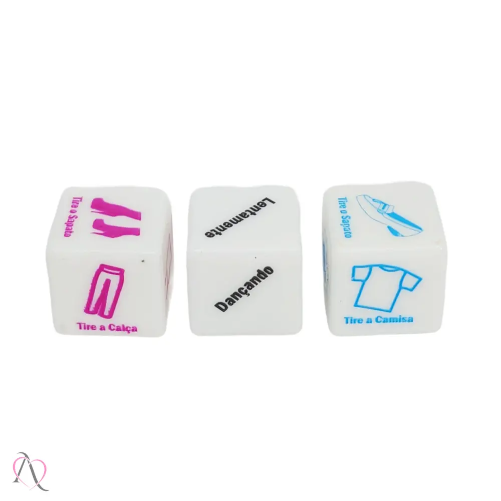 Modo de Uso: Escolha um momento íntimo e descontraído com o seu parceiro. Joguem os dois dados e descubram a combinação: quem tira a roupa e qual peça será tirada. Siga o que os dados indicarem, sem pressa, curtindo cada gesto, cada olhar e cada provocação. O jogo termina quando todos estiverem completamente sem roupas — ou quando o desejo decidir mudar as regras. Ideal para dar início a uma noite gostosa, entrega e muita intimidade.
