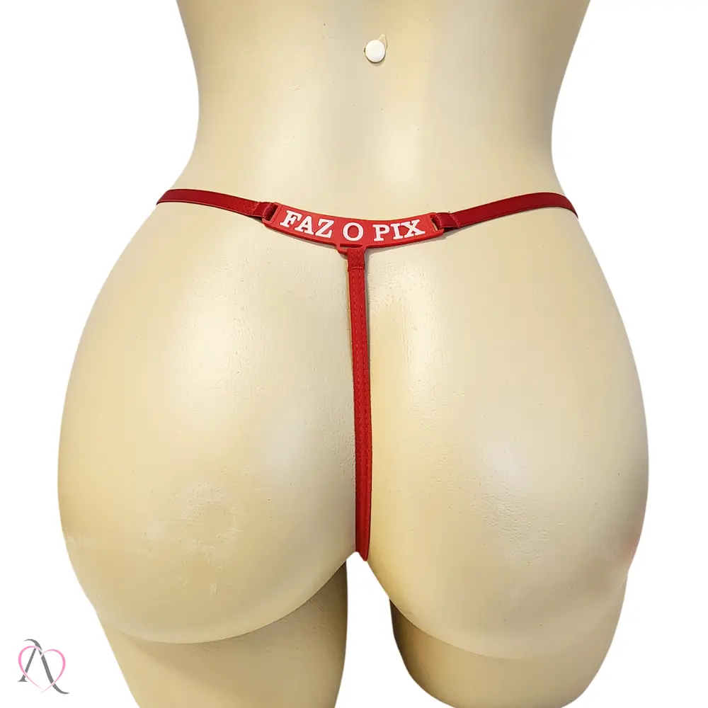 Contém: 01 Calcinha Fio Dental vermelho com a frase FAZ O PIX.