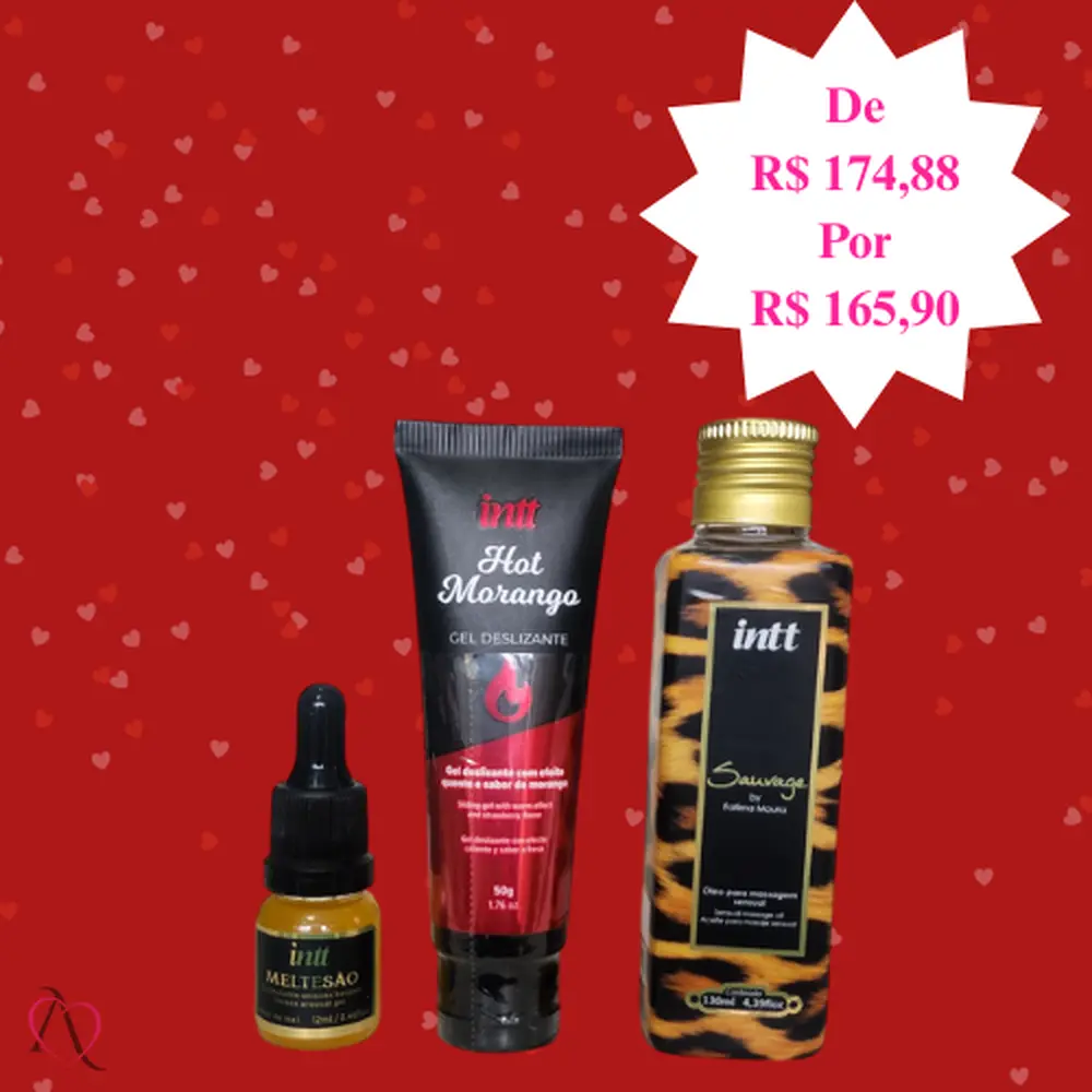 Contém: 1 Óleo para massagem Sauvage, 1 Estimulante Meltesão e 1 Lubrificante Hot Morango.