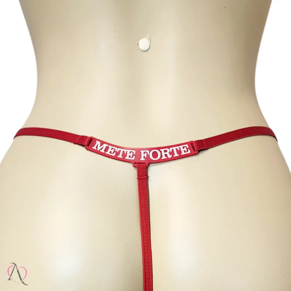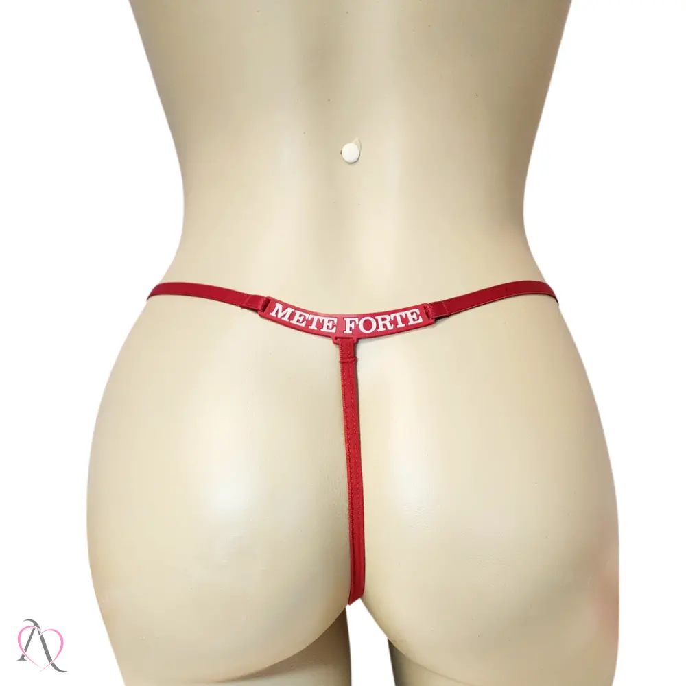Contém: 01 Calcinha Fio Dental vermelho com a frase METE FORTE.