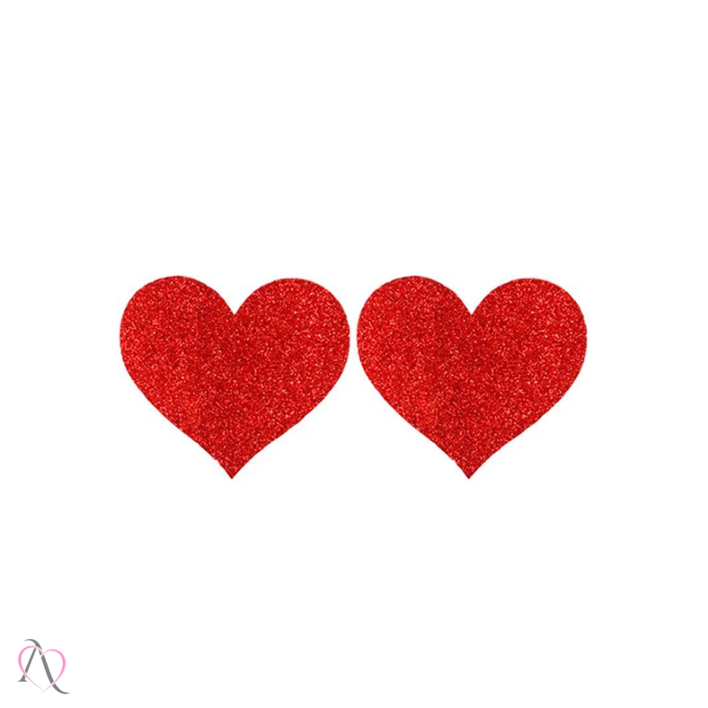 Contém: 1 par de tapa mamilos em formato de coração na cor vermelho brilhante.
