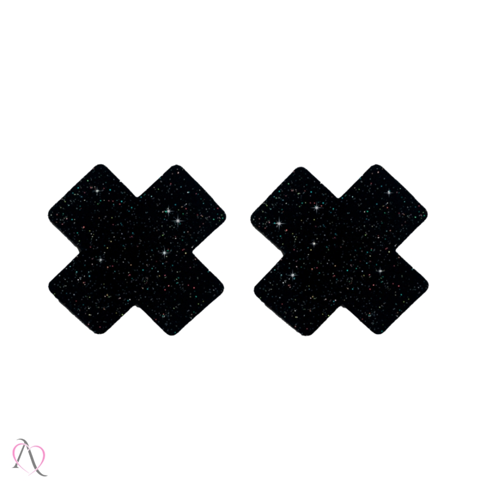 O par de tapa mamilos em formato de X brilhante é ideal para quem busca unir sensualidade, delicadeza e liberdade no vestir.